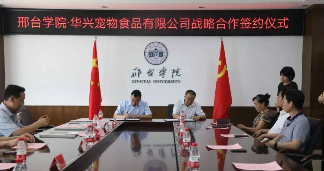 7月3日,南和縣委常委、組織部長李中伏,南和縣委常委、統(tǒng)戰(zhàn)部長樊振宇以及南和縣人大、政協(xié)、農(nóng)業(yè)農(nóng)村局等相關(guān)領(lǐng)導(dǎo)與華興寵物食品有限公司總經(jīng)理冀葉軍一行一起前往邢臺(tái)學(xué)院參加邢臺(tái)學(xué)院·華興寵物食品有限公司戰(zhàn)略合作簽約儀式。邢臺(tái)學(xué)院校長蔡振禹與校方其他主要領(lǐng)導(dǎo)成員參與了合作簽約儀式。
