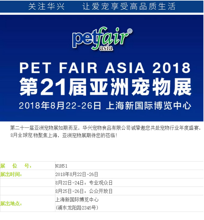華興寵物食品有限公司誠(chéng)摯邀您共赴寵物行業(yè)年度盛宴-第二十一屆亞洲寵物展