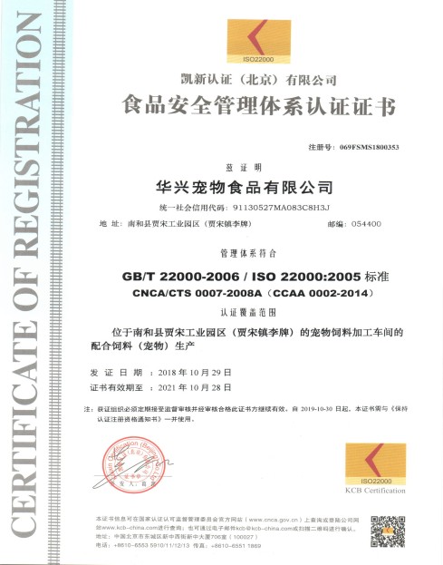 公司通過ISO22000食品安全管理體系認證
